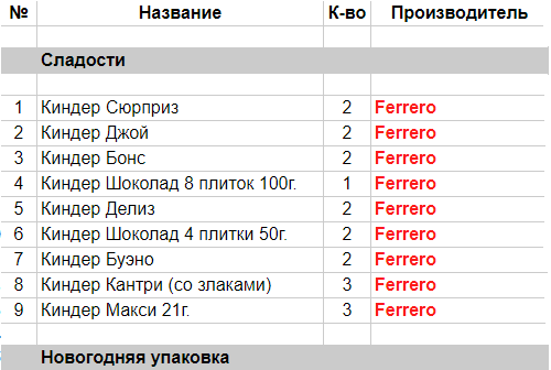 Опубликовано в Составы подарков